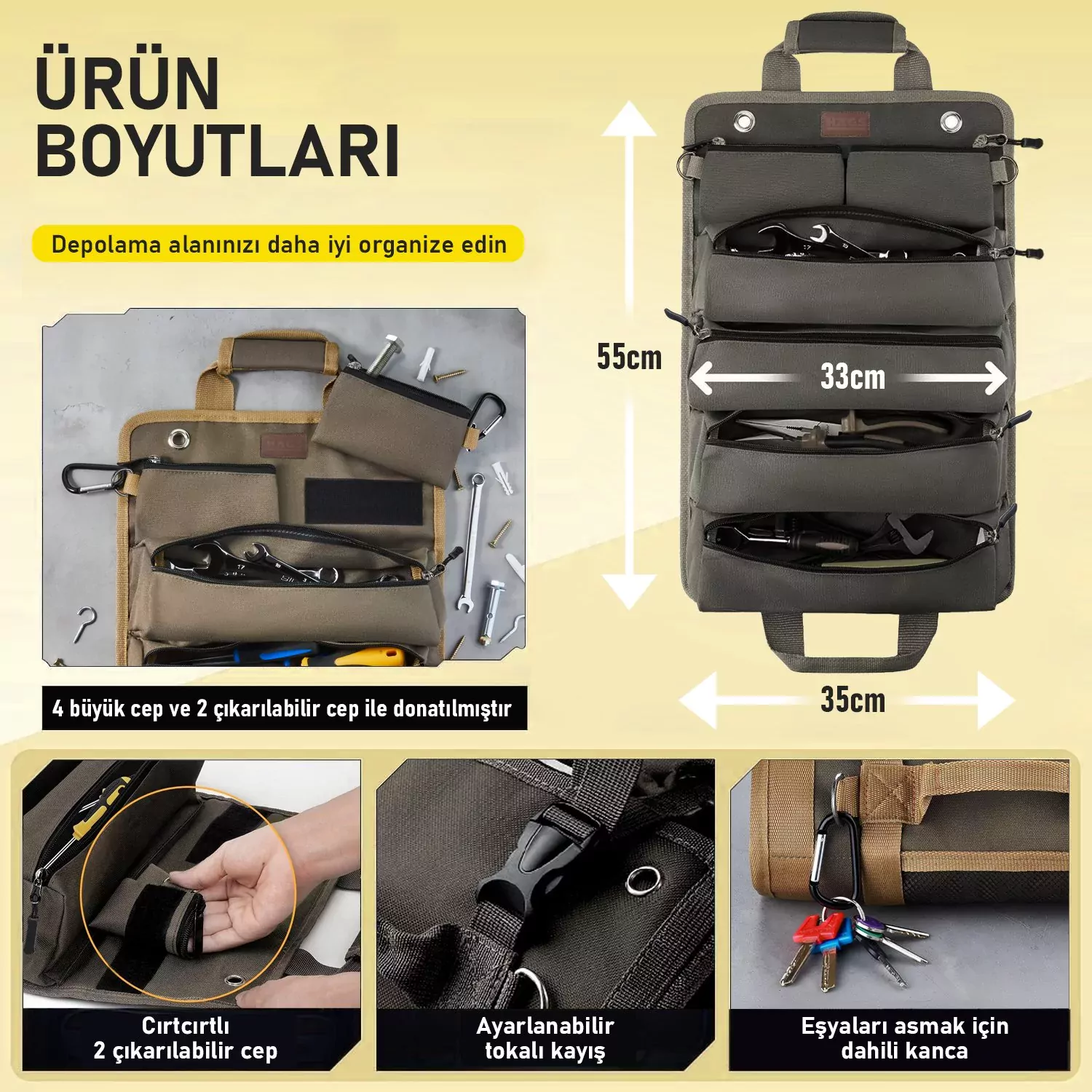 ✅ TAŞINABİLİR VE YERDEN TASARRUF SAĞLAR: Bu rulo halindeki alet çantası, aletlerin kolayca taşınmasını ve saklanmasını sağlar; sadece doldurun, rulo haline getirin ve kolayca taşıyın, verimli alan kullanımı için araba koltuklarının altına veya bisiklet veya motosikletlerin sele çantalarına koyun