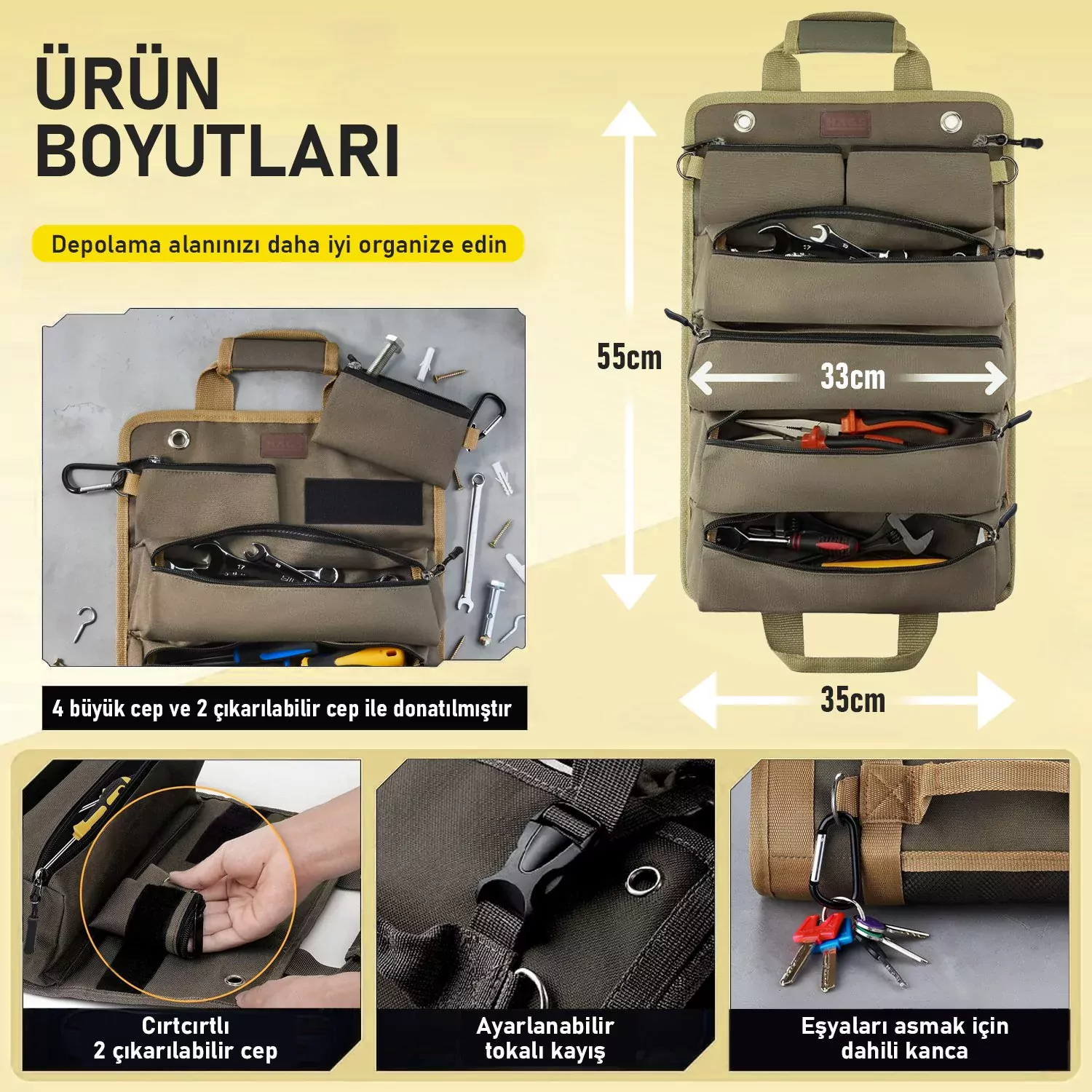 ✅ TAŞINABİLİR VE YERDEN TASARRUF SAĞLAR: Bu rulo halindeki alet çantası, aletlerin kolayca taşınmasını ve saklanmasını sağlar; sadece doldurun, rulo haline getirin ve kolayca taşıyın, verimli alan kullanımı için araba koltuklarının altına veya bisiklet veya motosikletlerin sele çantalarına koyun
