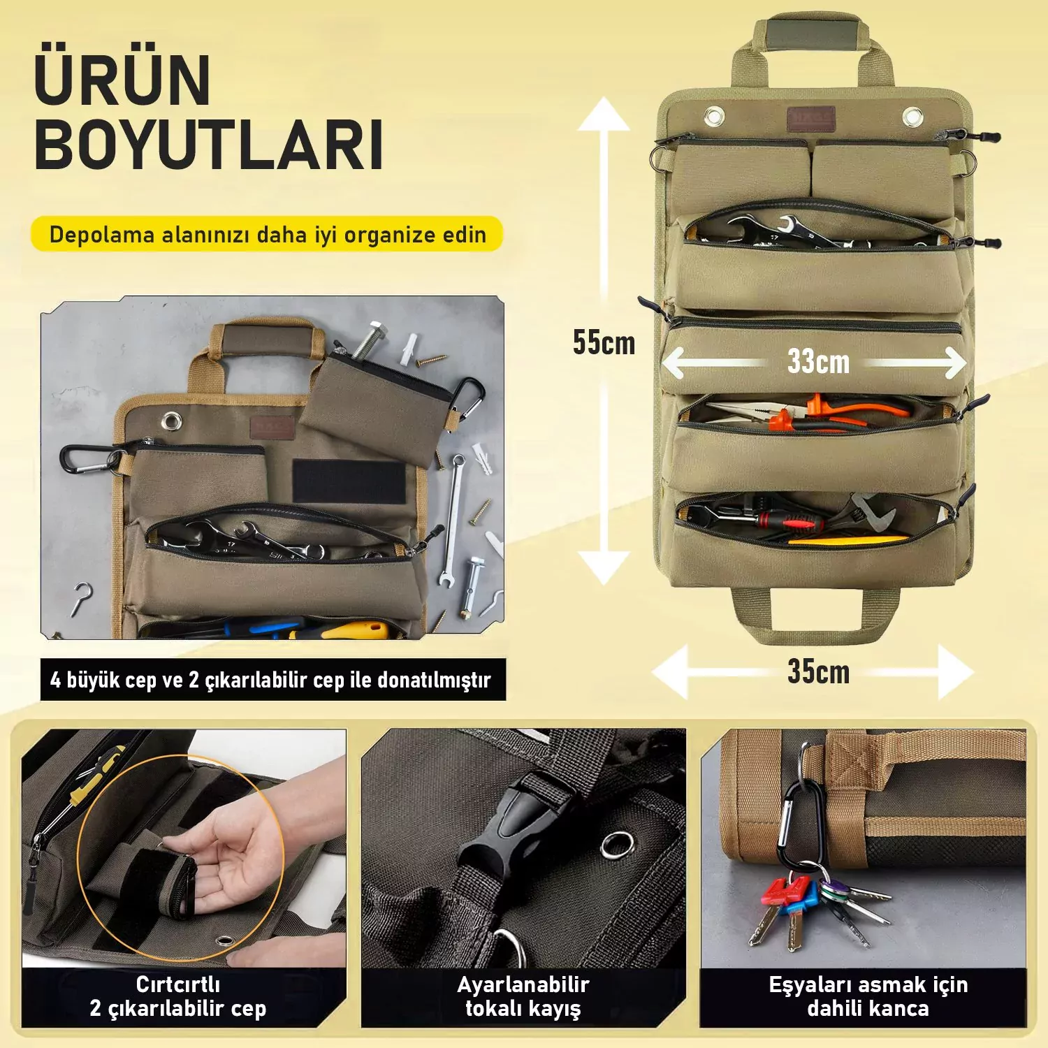 ✅ TAŞINABİLİR VE YERDEN TASARRUF SAĞLAR: Bu rulo halindeki alet çantası, aletlerin kolayca taşınmasını ve saklanmasını sağlar; sadece doldurun, rulo haline getirin ve kolayca taşıyın, verimli alan kullanımı için araba koltuklarının altına veya bisiklet veya motosikletlerin sele çantalarına koyun