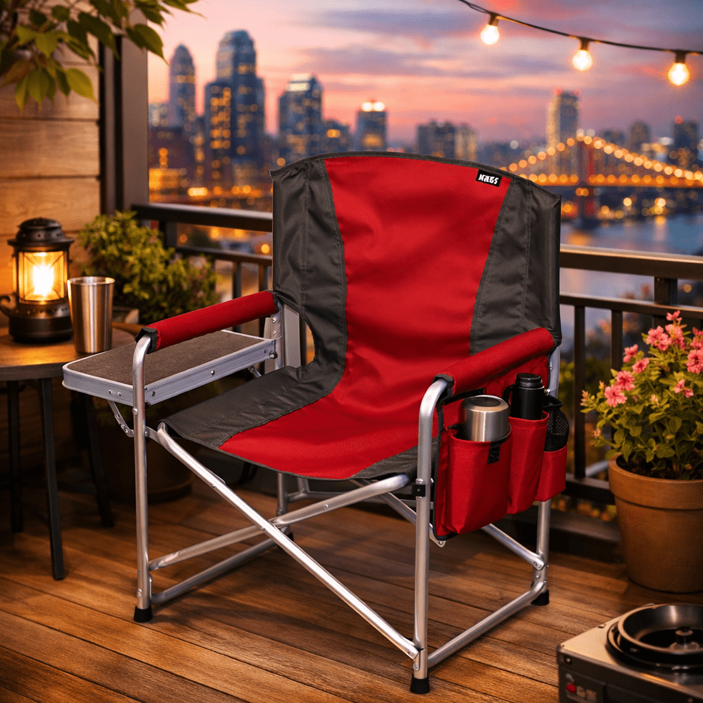 ✅ KULLANIŞLI VE RAHAT ÖZELLİKLER: Katlanır yönetmen koltuğu, eşyalarınızı elinizin altında tutmak için bir yan sehpa ile birlikte gelir; dayanıklı kumaş ve sert kolçaklar ekstra konfor ve rahatlama sağlar.