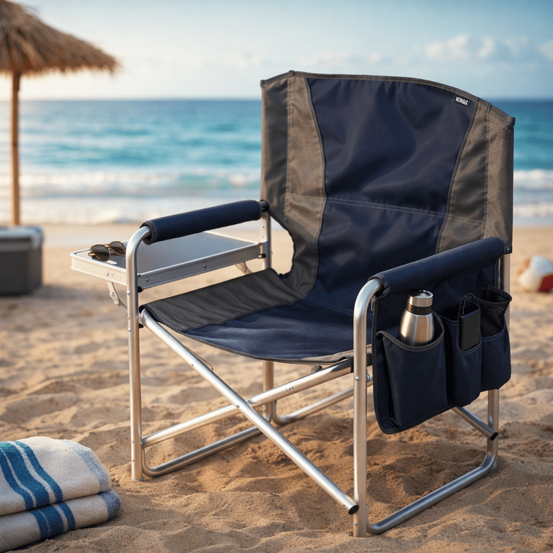 ✅ KULLANIŞLI VE RAHAT ÖZELLİKLER: Katlanır yönetmen koltuğu, eşyalarınızı elinizin altında tutmak için bir yan sehpa ile birlikte gelir; dayanıklı kumaş ve sert kolçaklar ekstra konfor ve rahatlama sağlar.