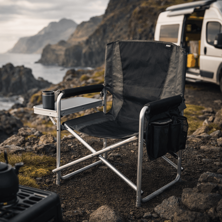 ✅ KULLANIŞLI VE RAHAT ÖZELLİKLER: Katlanır yönetmen koltuğu, eşyalarınızı elinizin altında tutmak için bir yan sehpa ile birlikte gelir; dayanıklı kumaş ve sert kolçaklar ekstra konfor ve rahatlama sağlar.