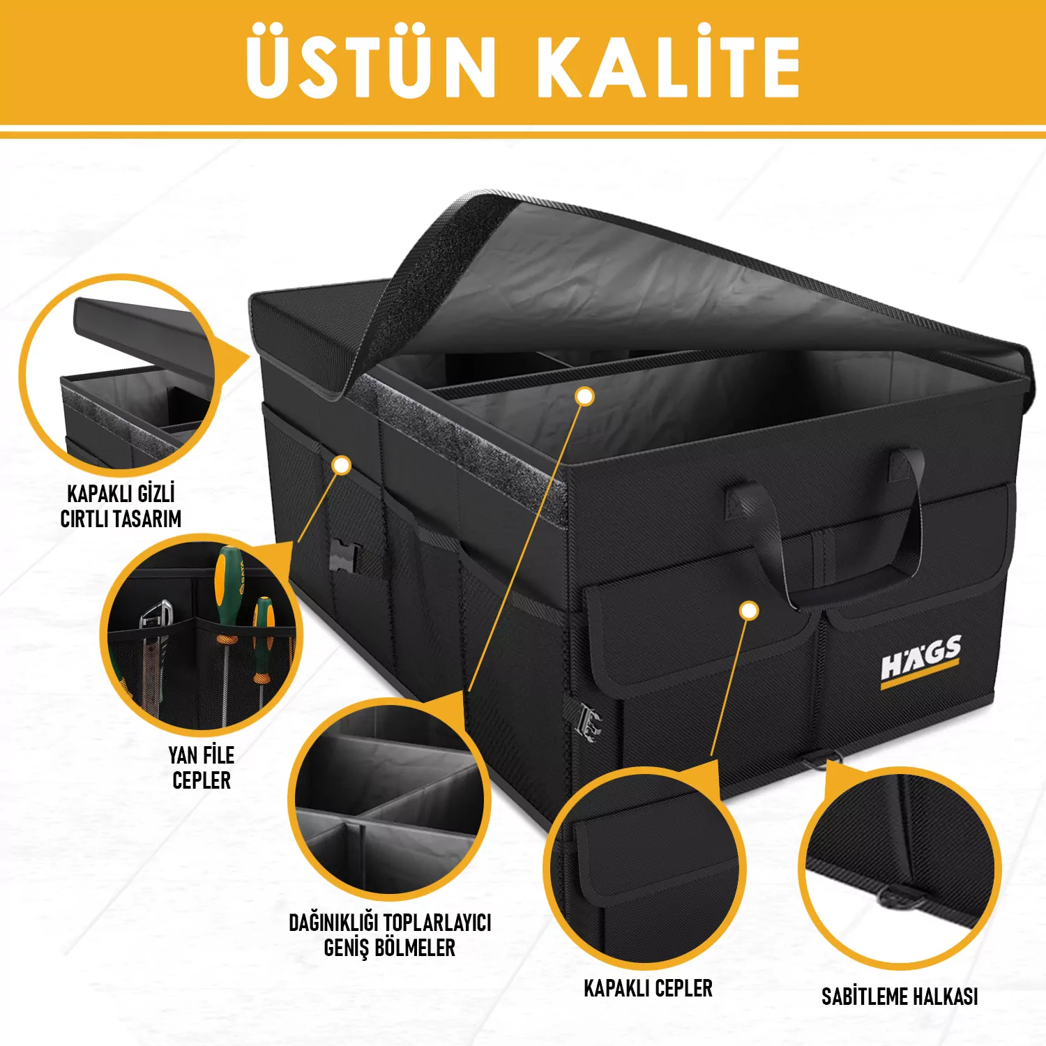 ✅ KOLAY ERİŞİM: Sedan, SUV, Hatchback, Pickup için Haegs araç bagaj düzenleyicisi, eşyaların ihtiyaç duyulduğunda kolayca görülebilmesi ve alınabilmesi için 3’e kadar yapılabilen bölme ve 6 esnek file cep ile donatılmıştır. İhtiyacınız olanı bulmak için dağınık bir bagajda arama yapmanıza gerek yok. Sadece alın ve gidin.