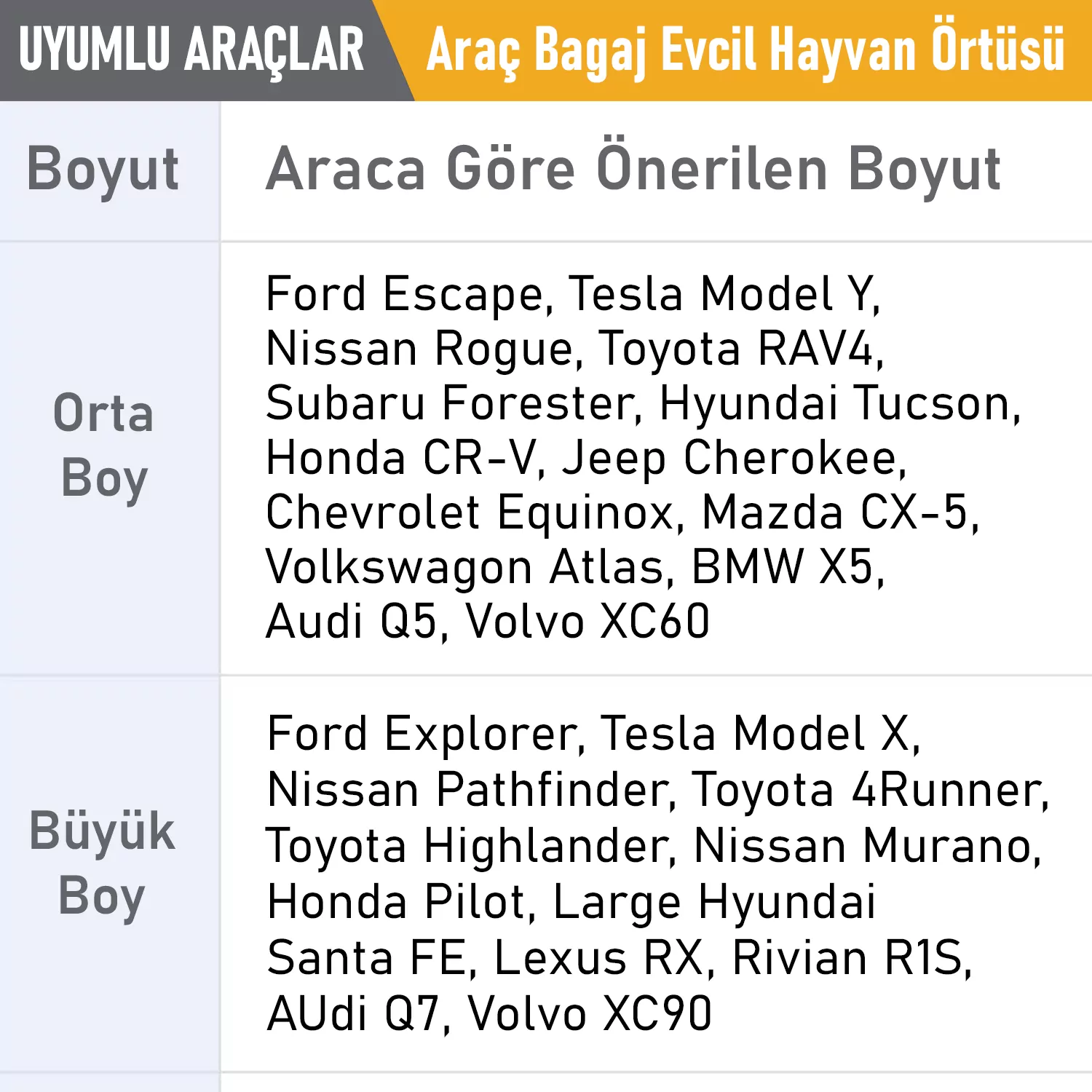 ✅ ÇOĞU ARAÇ İLE UYUMLU: Haegs araç bagaj içi örtüsü bölünmüş koltuklara ve orta kargo geçişlerine sahip araçlara da özel olarak uyacak şekilde tasarlanmıştır. Fermuarlı tasarımı çoğu araçla, SUV, minivan, Pickup için sıkı bir uyum sağlayarak aracınızın bagaj alanı için güvenilir koruma sağlar. Lütfen aracınız ölçülerine uygun olan boyutu seçiniz.
