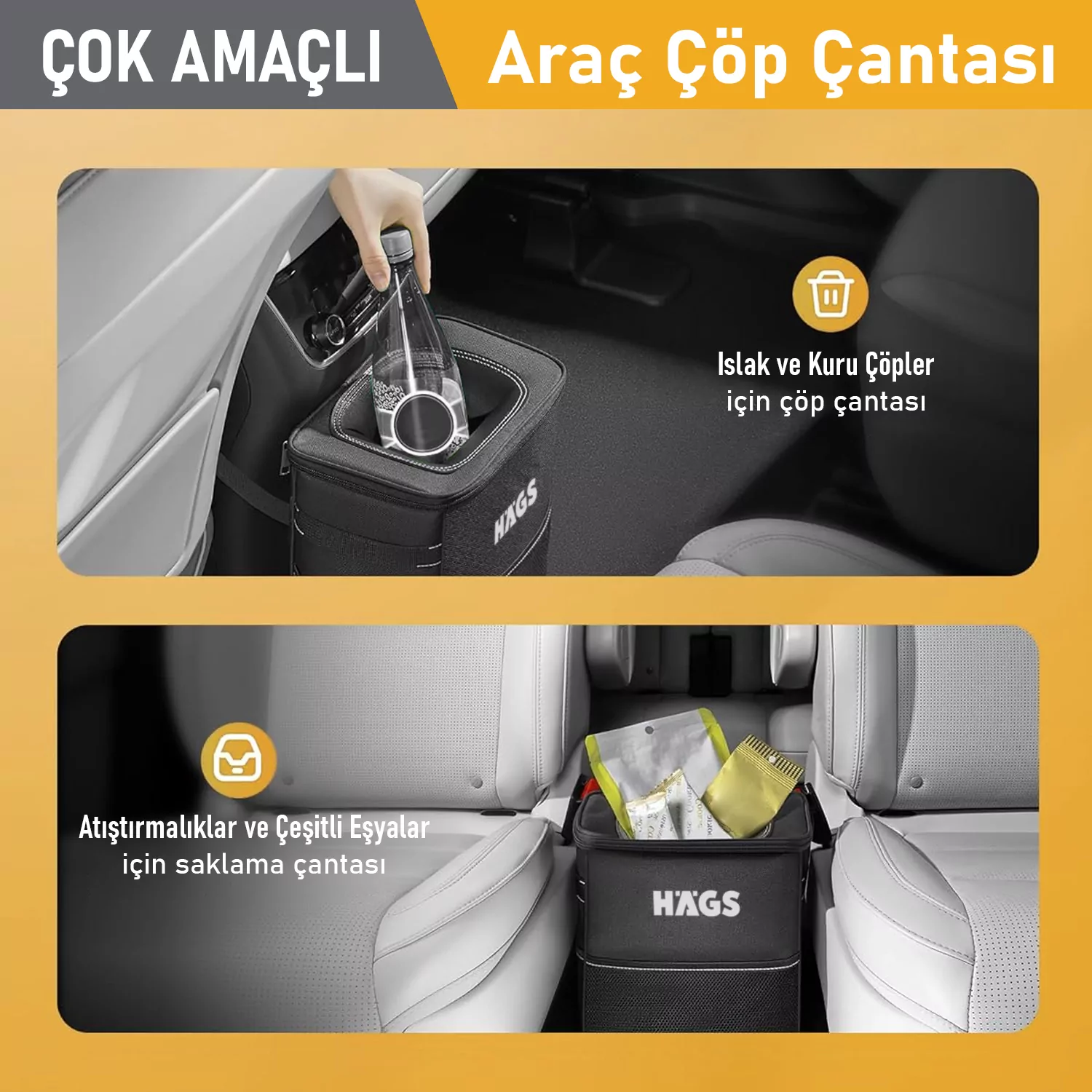 ✅ ÇOK AMAÇLI KULLANIM : Bu araba çöp kutusu, bardak, oyuncak ve diğer aksesuarlar gibi eşyaları saklamak için saklama çantası, araç içi organizer çanta olarak kullanılabilir.