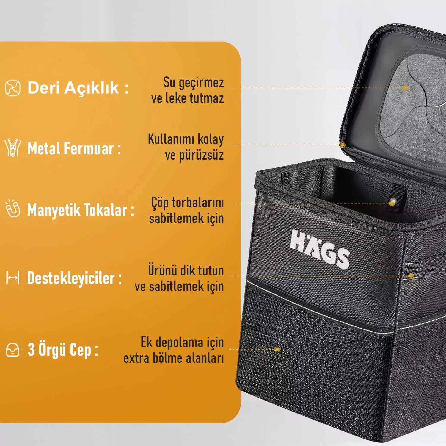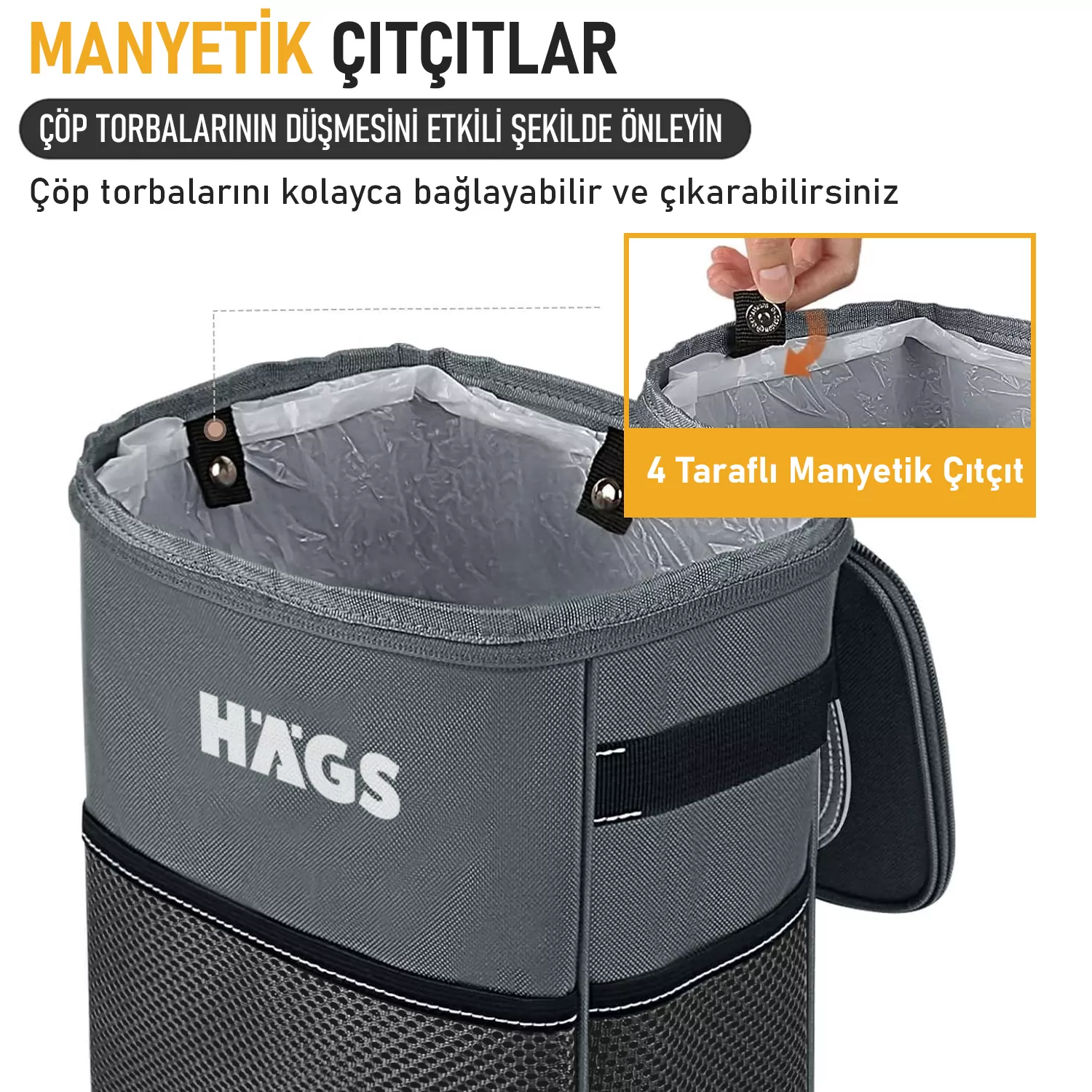 ✅ MANYETİK TIRNAKLAR: HAEGS araba çöp çantasının içinde ekstra çöp torbasını sabitlemek için 4 adet metalik manyetik çıtçıt bulunur. Geleneksel araba çöp kutularıyla karşılaştırıldığında, bu 4 küçük çıtçıt araba çöp torbalarının değiştirilmesini kolaylaştırır, poşetin düşmesini engeller. Kullanılmış çöp torbasını yenisiyle değiştirmek için manyetik çıtçıtları açmanız yeterlidir. Daha sonra çöp torbasını sabitlemek için manyetik çıtçıtları kapatın. Sadece 2 adım ve hepsi bu kadar.