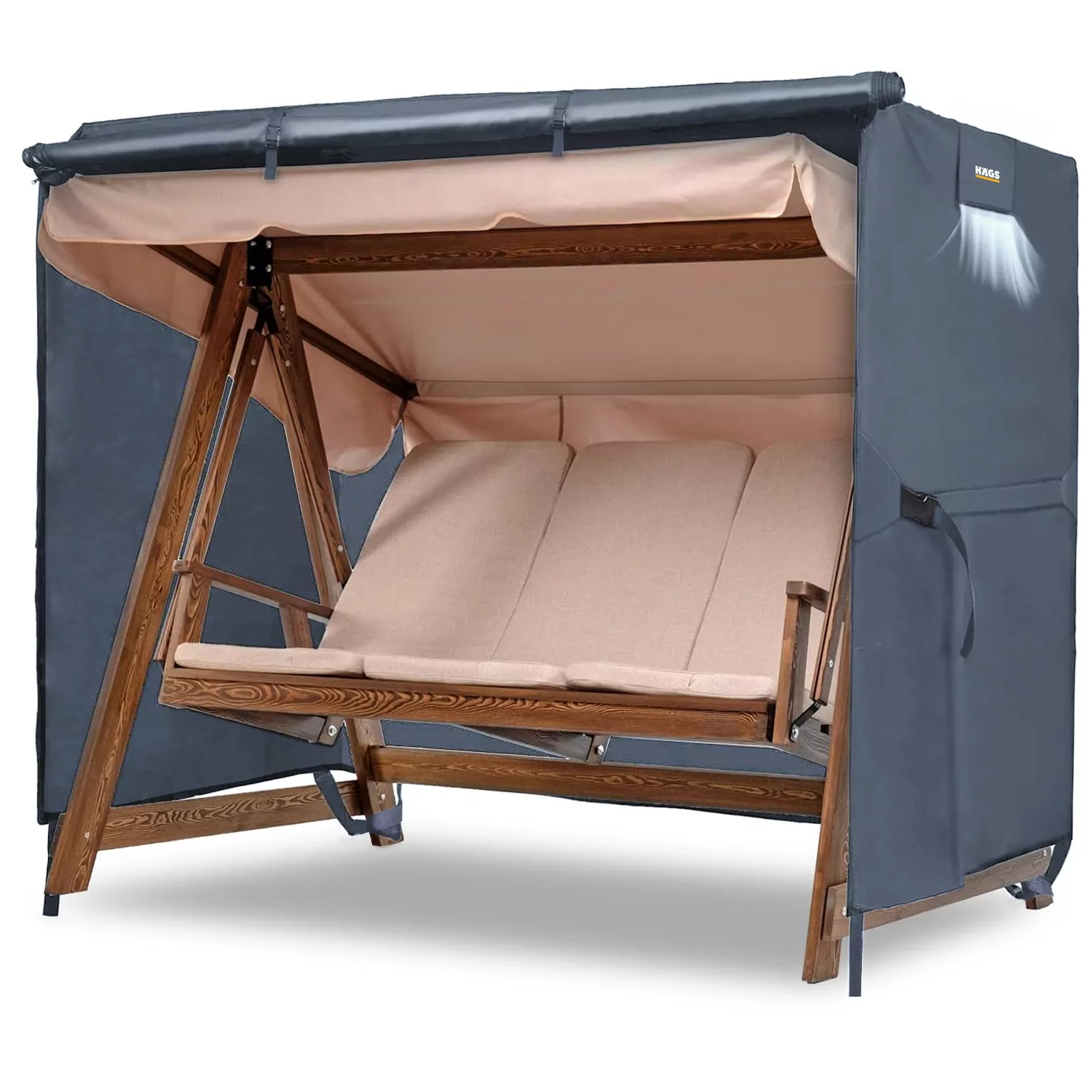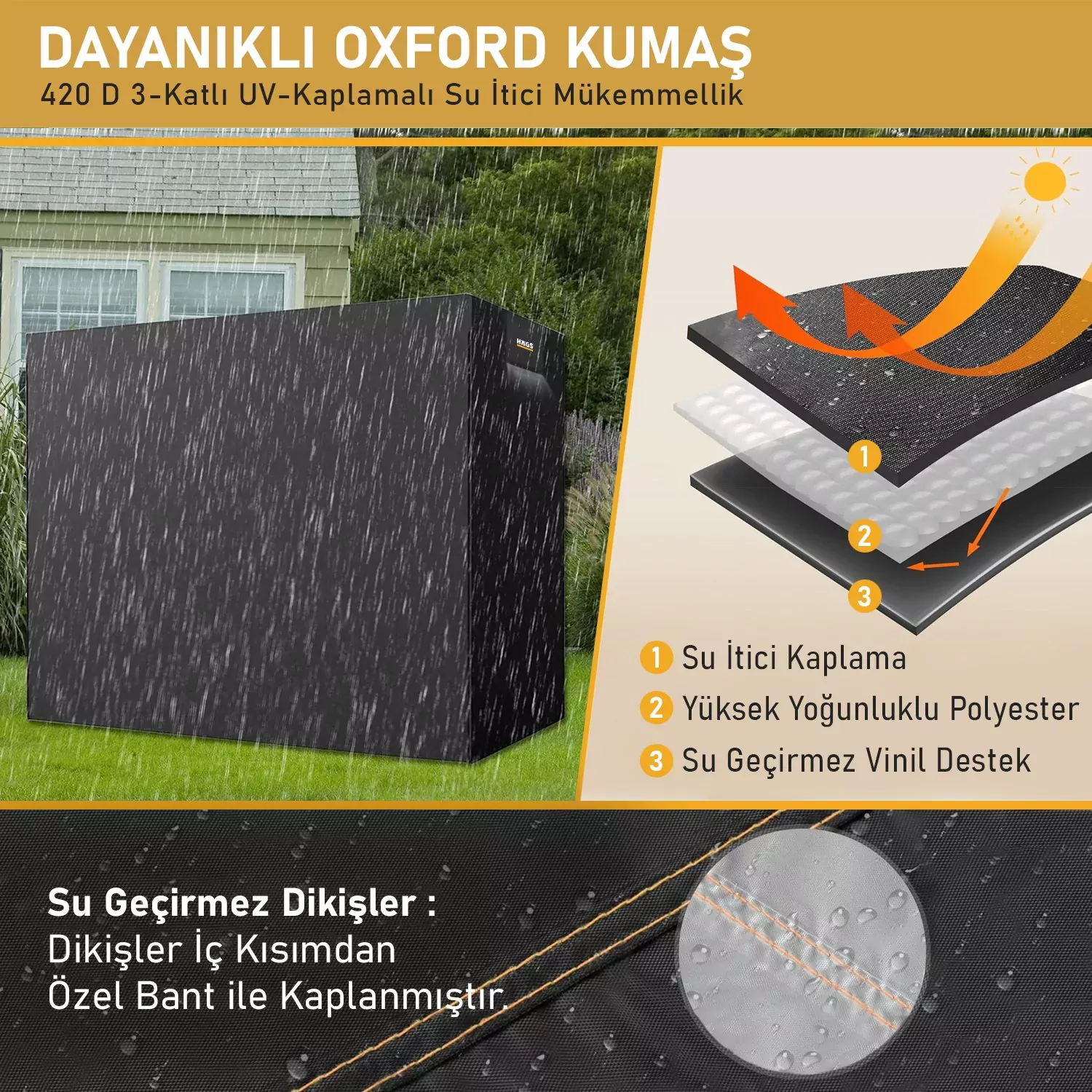 ✅ DAYANIKLI MALZEME VE SU GEÇİRMEZ SIZDIRMAZLIK BANDI: HAEGS veranda salıncağı kılıfı, iç PU kaplamalı ağır hizmet tipi su geçirmez oxford kumaştan yapılmıştır. Daha iyi su geçirmezlik performansı sağlamak için, kılıfın dikiş yerlerinde suyun dikiş yerlerinden sızmasını önlemeye yardımcı olmak için sıcak basınçla yapıştırılmış sızdırmazlık bandı ile yükseltilmiştir. Açık hava salıncağınız için güneşe, yağmura, toza, yapraklara, kara, kuş pisliklerine vb. karşı maksimum koruma sağlayacaktır.