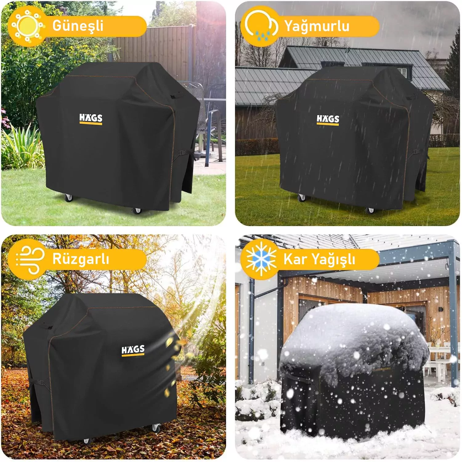 ✅ ŞİDDETLİ RÜZGÂRLARLA VE KUVVETLİ FIRTINALARLA MÜCADELE EDER: Izgaranızı güvende tutmak için her türlü hava koşuluna meydan okur! Bu Haegs Mangal BBQ ızgara örtüsü, Kılıfı laminelidir ve tamamen su geçirmezdir. Yağmur, kar, buz ve sulu karın nasıl kayıp gittiğini izleyin!