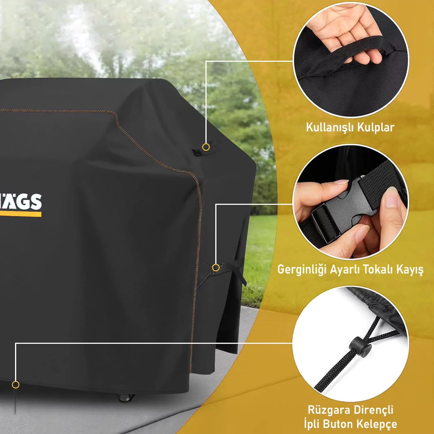 ✅ ERGONOMİK: Bu ağır hizmet tipi Dış mekan gazlı mangal veya kömürlü mangal BBQ ızgara kılıfı her şeyi yapar. Yanlardan yastıklı kulplarla, kenarlarındaki gerdirme tokaları ile al tarafındaki komple saran gerdirme ipi ile büyük ızgara kılıfımız rahatlık için tasarlanmış ve dayanıklılık için üretilmiştir.