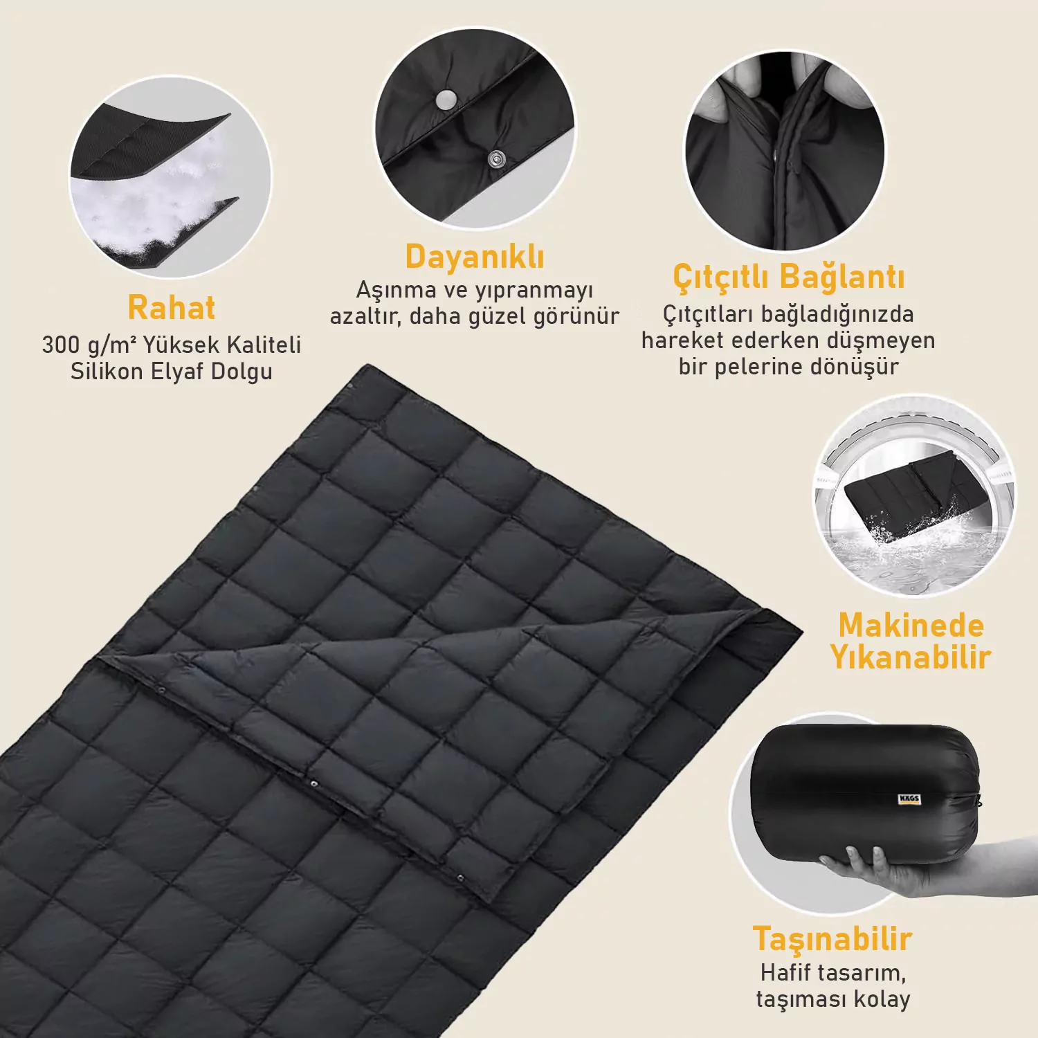 ✅ ÇOK AMAÇLI BATTANİYE: Kamp alanından kanepeye kadar battaniye veya şal olarak kullanılabilir. Düğmeleri bir şal gibi toplar ve sizi sıcak tutar ve ellerinizi serbest bırakır. Ayrıca sıcak bir uyku tulumu olarak da bağlayabilirsiniz.
