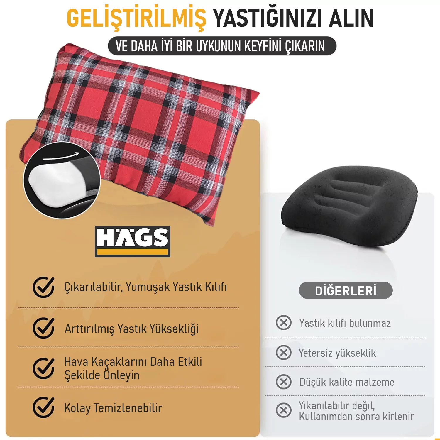 ✅ KOMPAKT VE TAŞINABİLİR : HAEGS kamp yastığı 30x 45 cm ve 35x 50cm boyutlarında iki farklı ölçüdedir (doldurulmadan önceki kumaş ölçüsü, 2-3 cm farkedebilir), pratik bir seyahat çantası ile sıkıştırılabilir ve taşınabilir bir tasarıma sahiptir. Bagaja kolayca takılır veya arabaya asılır, bu da onu iş seyahatinde olanlar, kampçılar ve sırt çantalı gezginler için ideal hale getirir