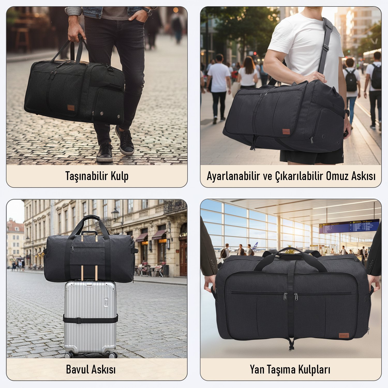 ✅ %100 GÜVENLE SATIN ALIN: Birçok durumda kullanabileceğiniz iyi bir seyahat arkadaşı. Spor çantası, hafta sonu çantası, seyahat çantası, kamp çantası, araba seyahat çantası, erkek ve kadın el çantası vb. olarak kullanılabilir. Aileniz, sevgiliniz, arkadaşlarınız ve iş arkadaşlarınız için harika bir hediyedir.