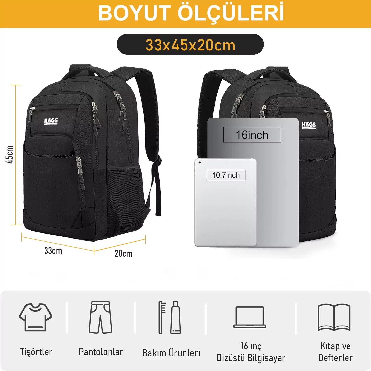 ✅ RAHAT ERGONOMİK TASARIM: HAEGS laptop sırt çantası, iş sırt çantası, kalın ama yumuşak, çok panelli havalandırmalı dolgulu rahat hava akışlı sırt tasarımı, size maksimum sırt desteği sağlar. Nefes alabilen ve ayarlanabilir omuz askıları omuzlardaki stresi azaltır. Uzun süre taşıma için köpük dolgulu üst sap.