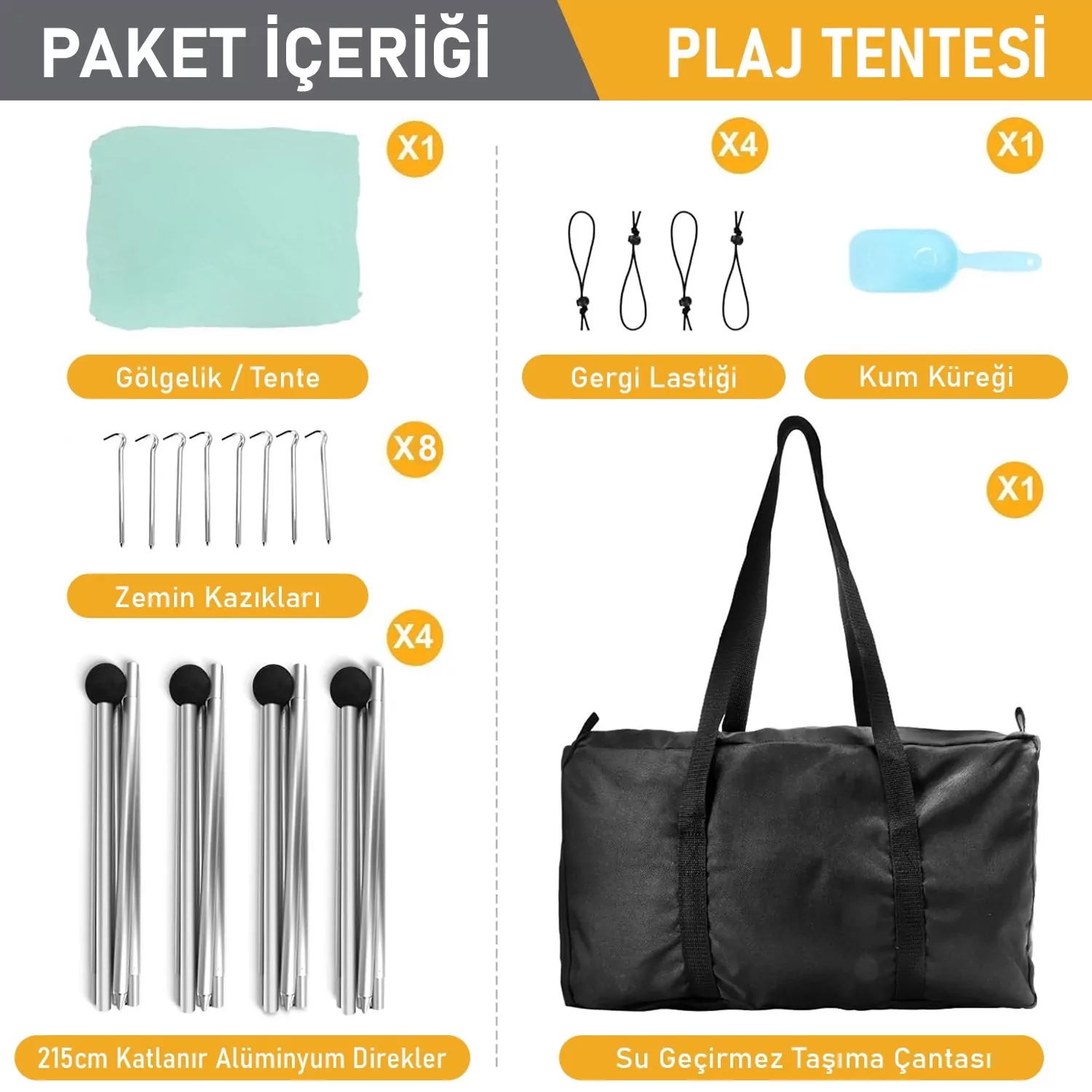 ✅ Kolay Kurulumlu Plaj Tentesi: Sadece birkaç dakika—Plaj sahil deniz gölgelik tenteyi gölgelik brandayı örtüyü yere serin, maksimuma kadar gerin, kum torbalarını doldurun, ardından tenteyi direklere bağlayın ve yere yerleştirin. Kazıkları kum torbalarıyla sabitleyin ve plaj için harika bir plaj güneş şemsiyesi gölgelik tenteniz olsun. İşiniz bittiğinde, kompakt plaj gölge çadırını çoğu valize veya araba bagajına kolayca sığan dahil taşıma çantasına koyun—plaja, parka, kampa veya istediğiniz yere götürebilirsiniz