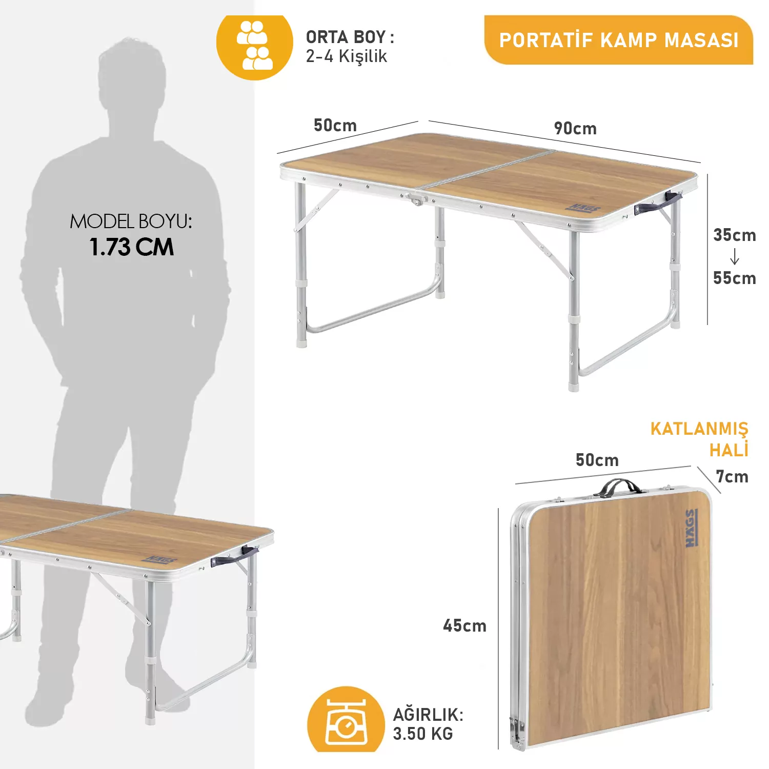 ✅ AYARLANABİLİR YÜKSEKLİK: Katlanır outdoor, kamp, piknik masasının yüksekliği 2 seviyede (35-55 cm) ayarlanabilir. Bu nedenle farklı yükseklikteki sandalyelerle kolaylıkla kombinlenebilir ve hem yetişkinler hem de çocuklar için uygundur. Günlük ihtiyaçlarınız tamamen karşılanabilir