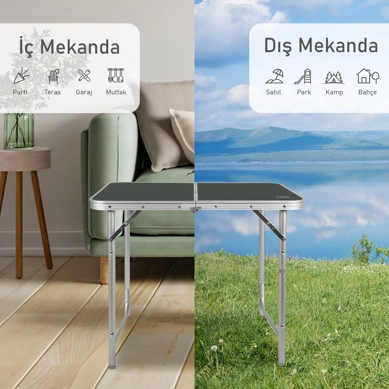 ✅ GENİŞ MASA TABLASI: 60 x 120 cm'lik masa tablası, 4-6 kişinin rahatça yemek yiyebilmesi için bol miktarda alan sunar. Yiyecekler, tatlılar ve içecekler de bu yüksekliği ayarlanabilen kamp masasının üstüne güvenli bir şekilde yerleştirilebilir.