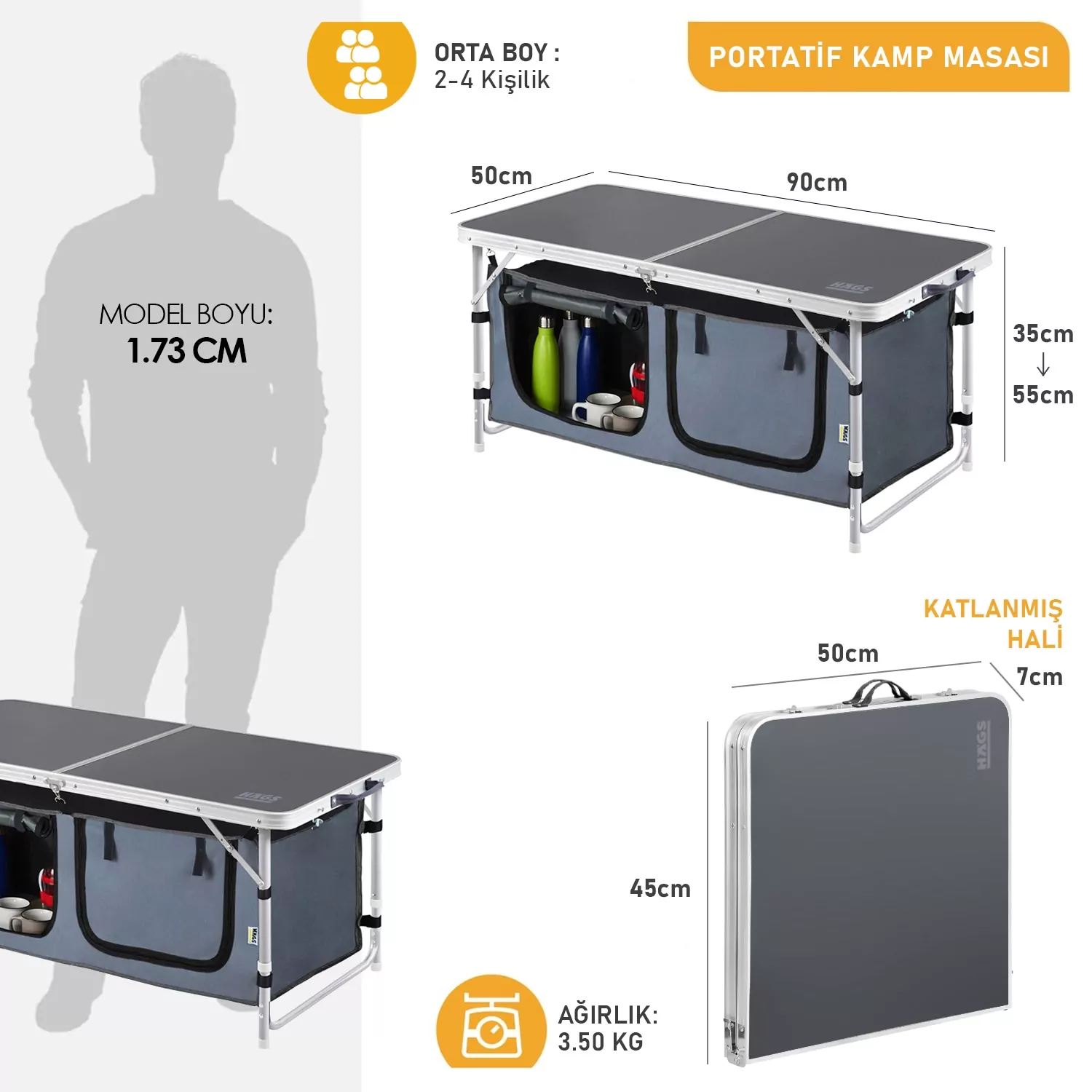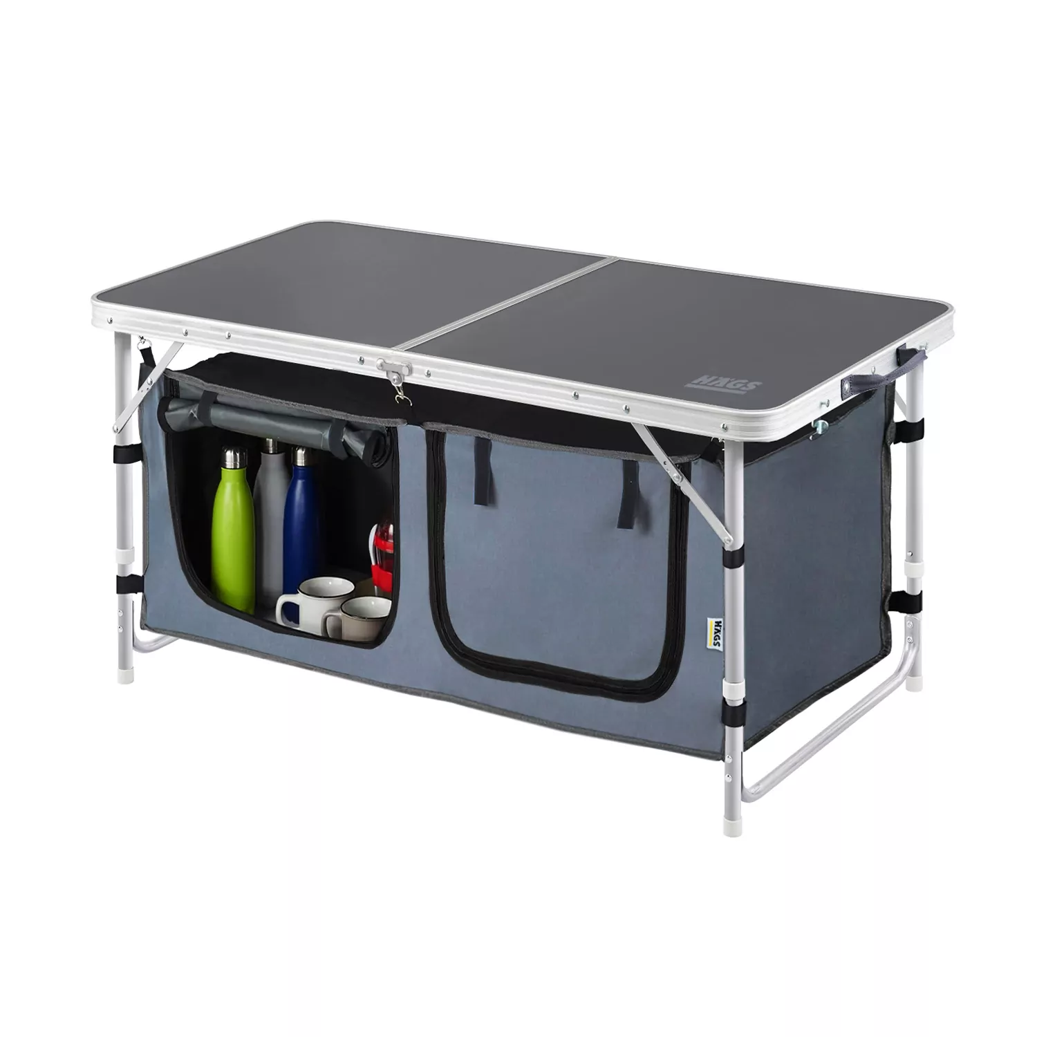 ✅ BÜYÜK KAPASİTELİ DEPOLAMA BÖLMELİ KAMP MASASI: Bu katlanır haegs kamp masasında her türlü yiyecek, içecek veya çatal bıçak takımı için büyük boy bir saklama dolabı bulunur. Depolama organizer bölmesini 8 adet cırt cırt ve 6 adet kancayla kolayca sabitleyebilirsiniz. Fermuar tasarımı eşyaların düşmesini önler. Kamp Mutfağı saklama bölmesin kumaşı su geçirmezdir, İki parça ahşap altlık sağlamlığı artırır, Çıkarılabilir bölmesi kolay saklama ve rahat taşınabilirlik sağlar.