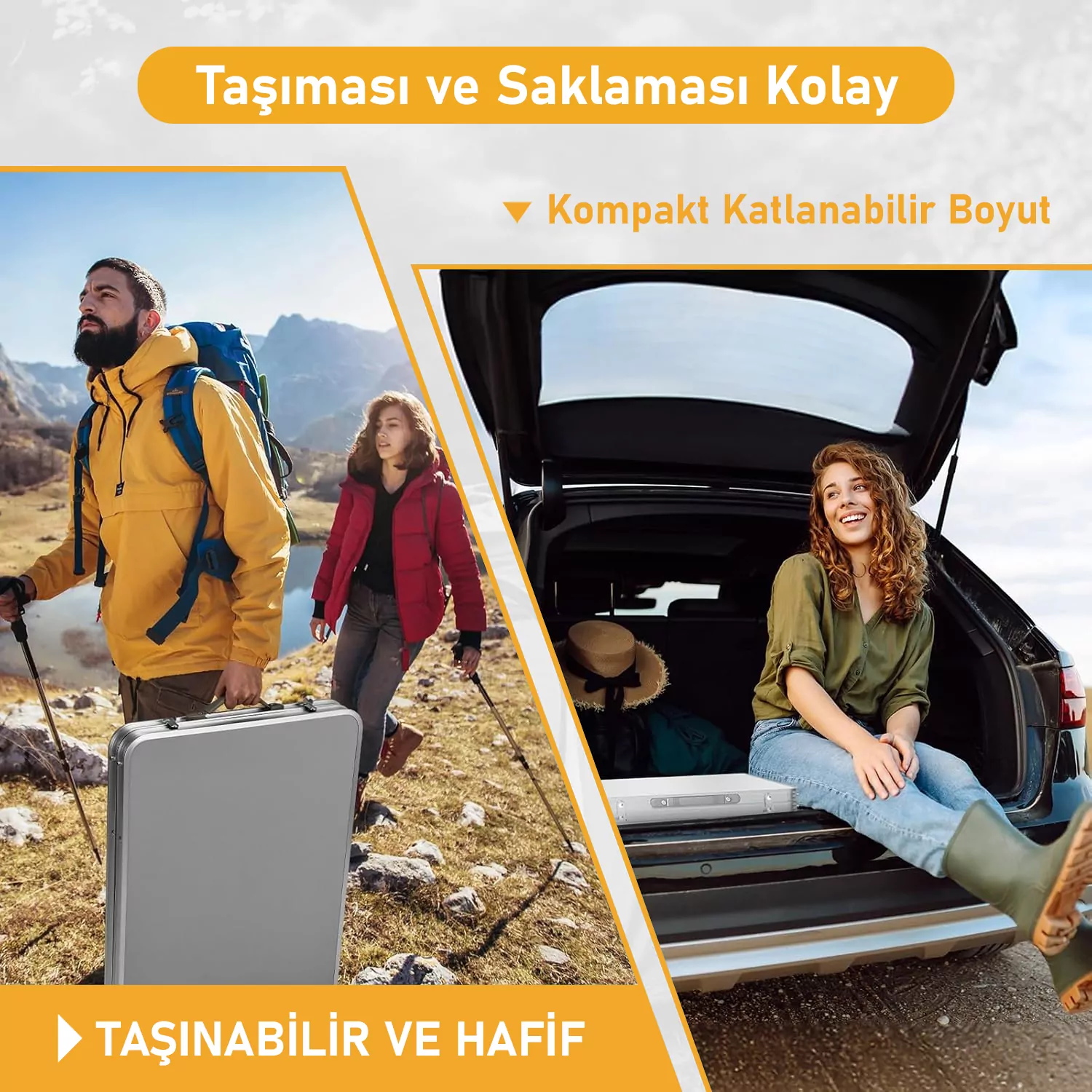 ✅ HAFİF TAŞINABİLİR MASA: Katlanabilir masa kurulumu kolaydır. Kompakt bir boyuta sahip olduğundan, arabanızın arkasına koyabilir veya sınırlı bir alanda saklayabilirsiniz. Hafif ve rahat sapı, taşımayı daha rahat ve güvenli hale getirir.
