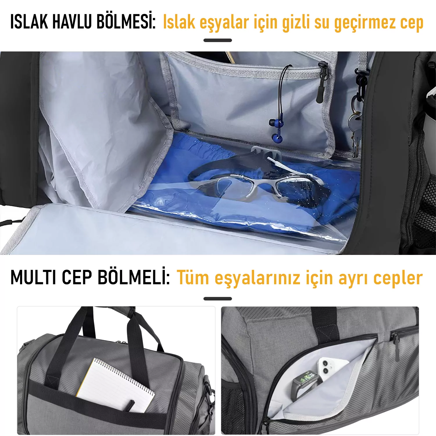 ✅ MULTI CEPLİ: Organize etmek için toplam 10 bölme. Büyük dahili telefon cebi ve anahtarlık halkası, ayrıca diğer küçük eşyalar için 2 harici fermuarlı cep içerir. Kolay erişim için cırt cırtlı arka cep. Tam Boy Ayakkabı Cebi: Kirli ayakkabılarınızı diğer ekipmanlarınızdan ayırmak için özel bölme. 47 numara erkek ayakkabısına kadar uyar. Islak Cep: Islak giysileri ve mayoları saklamak için gizli suya dayanıklı cep, yüzme antrenmanı veya terli spor kıyafetleri için mükemmeldir. 2 Şişe Tutucu: 32 oz su şişesi ve standart boyutta protein shaker'a uyacak şekilde tasarlanmış iki harici file kese içerir.