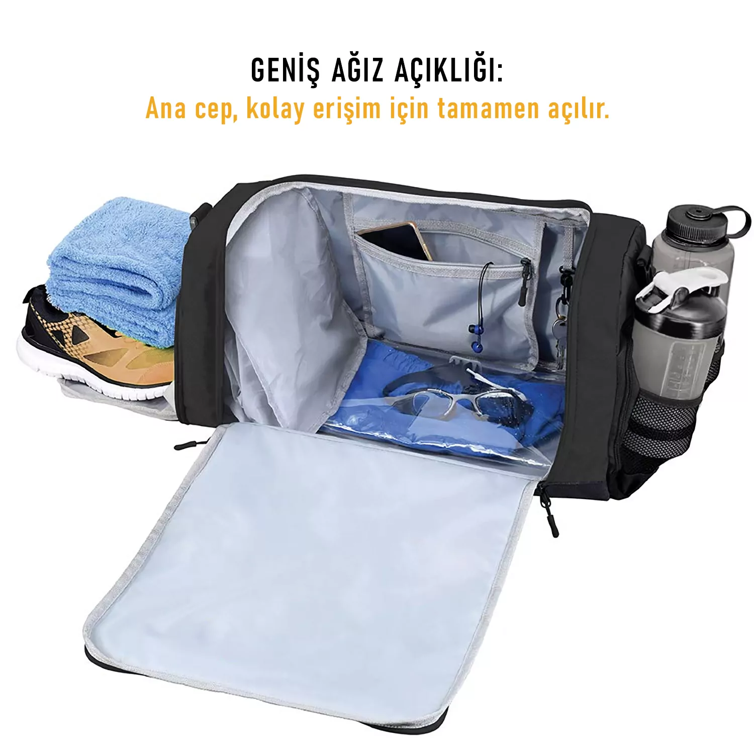 ✅ MULTI CEPLİ: Organize etmek için toplam 10 bölme. Büyük dahili telefon cebi ve anahtarlık halkası, ayrıca diğer küçük eşyalar için 2 harici fermuarlı cep içerir. Kolay erişim için cırt cırtlı arka cep. Tam Boy Ayakkabı Cebi: Kirli ayakkabılarınızı diğer ekipmanlarınızdan ayırmak için özel bölme. 47 numara erkek ayakkabısına kadar uyar. Islak Cep: Islak giysileri ve mayoları saklamak için gizli suya dayanıklı cep, yüzme antrenmanı veya terli spor kıyafetleri için mükemmeldir. 2 Şişe Tutucu: 32 oz su şişesi ve standart boyutta protein shaker'a uyacak şekilde tasarlanmış iki harici file kese içerir.