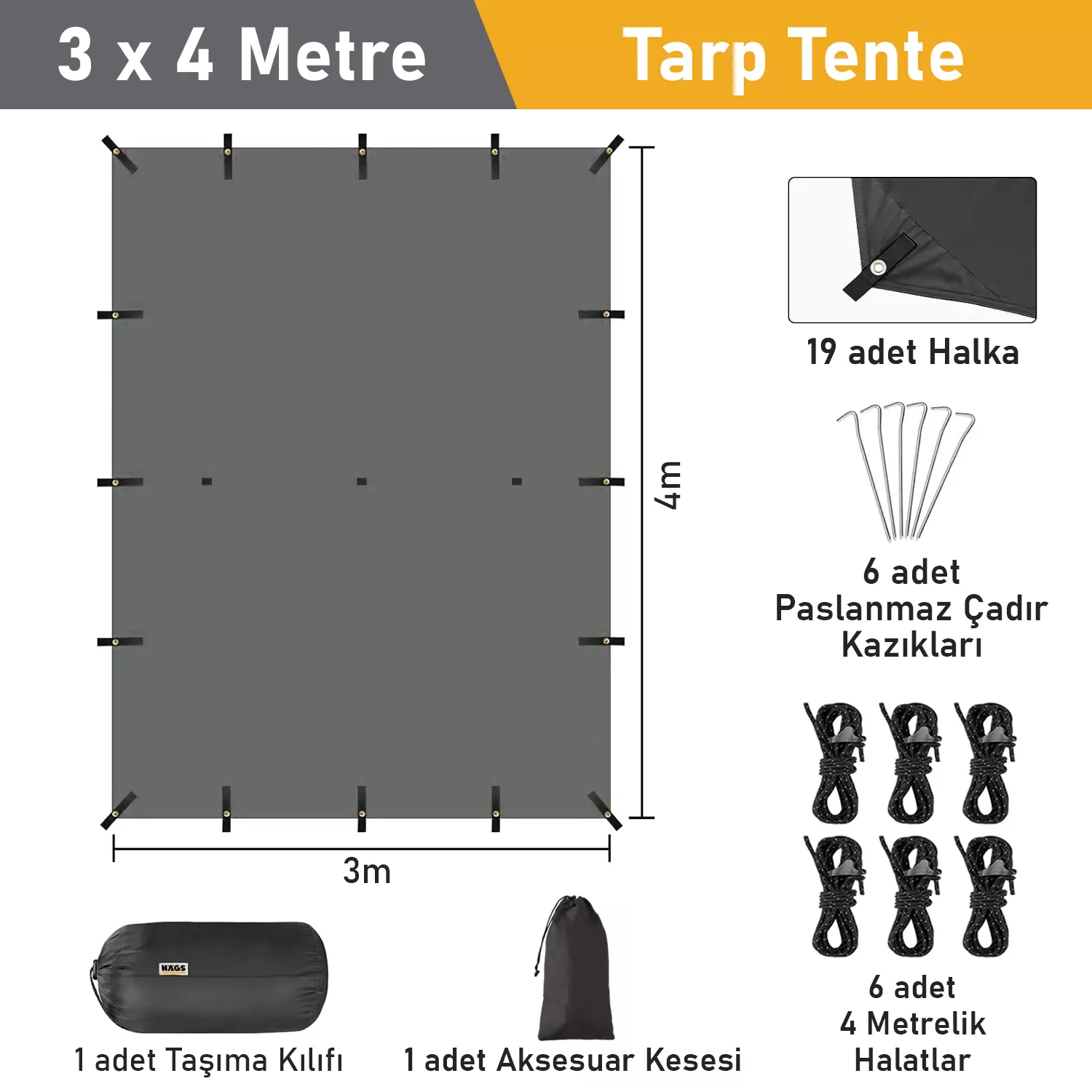 ✅ UV KORUMASI: 300T yırtılmaz polyester kumaştan yapılmış gölgelik Tarp Örtüsü güneş ışınlarının büyük kısmını kırarak zararlı ultraviyole ışınlarından korur. Tarp Tente gölgelik hafif su itici özelliklidir. (Su geçirmez değildir, Yağmur sularını geçirir). Yırtılmaya ve delinmeye karşı dayanıklı malzemesi sayesinde çadır, Kamp vb. Outdoor aktivitelerinde doğada herhangi bir endişe duymadan kullanılabilinir. Haegs Çadır Kamp Tarp Brandası ayrıca gölgelik tente olarak da kullanılabilir, ultraviyole ışınlarını etkili bir şekilde engellemek ve cildinizi güneşten korumak için etkilidir.
