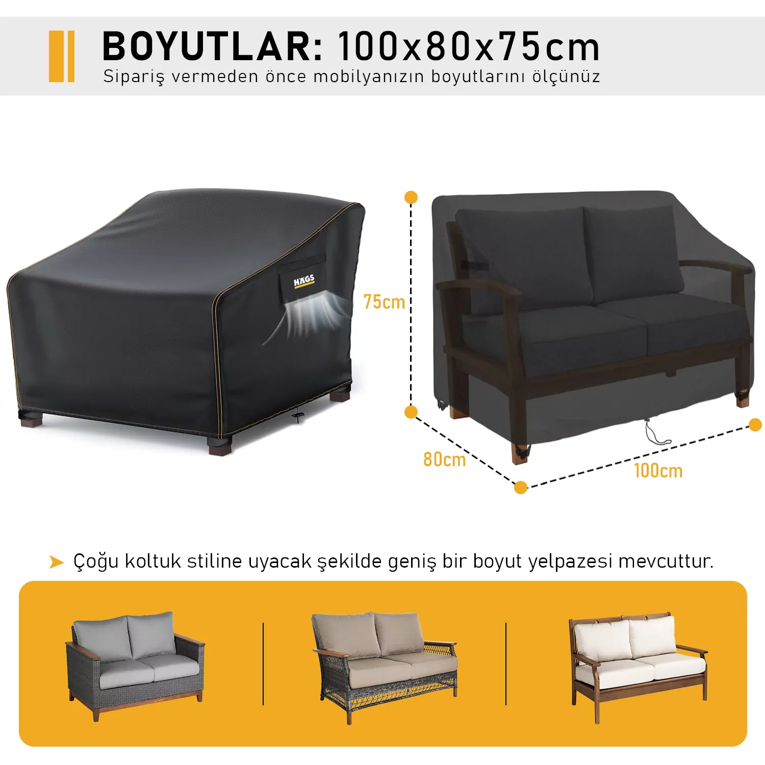 ✅ EVRENSEL BOYUT: Bahçe koltuk kılıflarımız farklı ölçülerdedir, birçok koltuk model ile uyumludur. Hasır koltuk, rattan koltuk, döner koltuk, derin oturma yeri olan koltuklar, sandalyeler, yüksek arkalıklı koltuk, sallanan sandalye ve diğer dış mekan koltuk setleri için uygundur. Lütfen mobilya koltuklarınızın boyutlarından en az 3-4 cm daha büyük bir koltuk kılıfı seçin.
