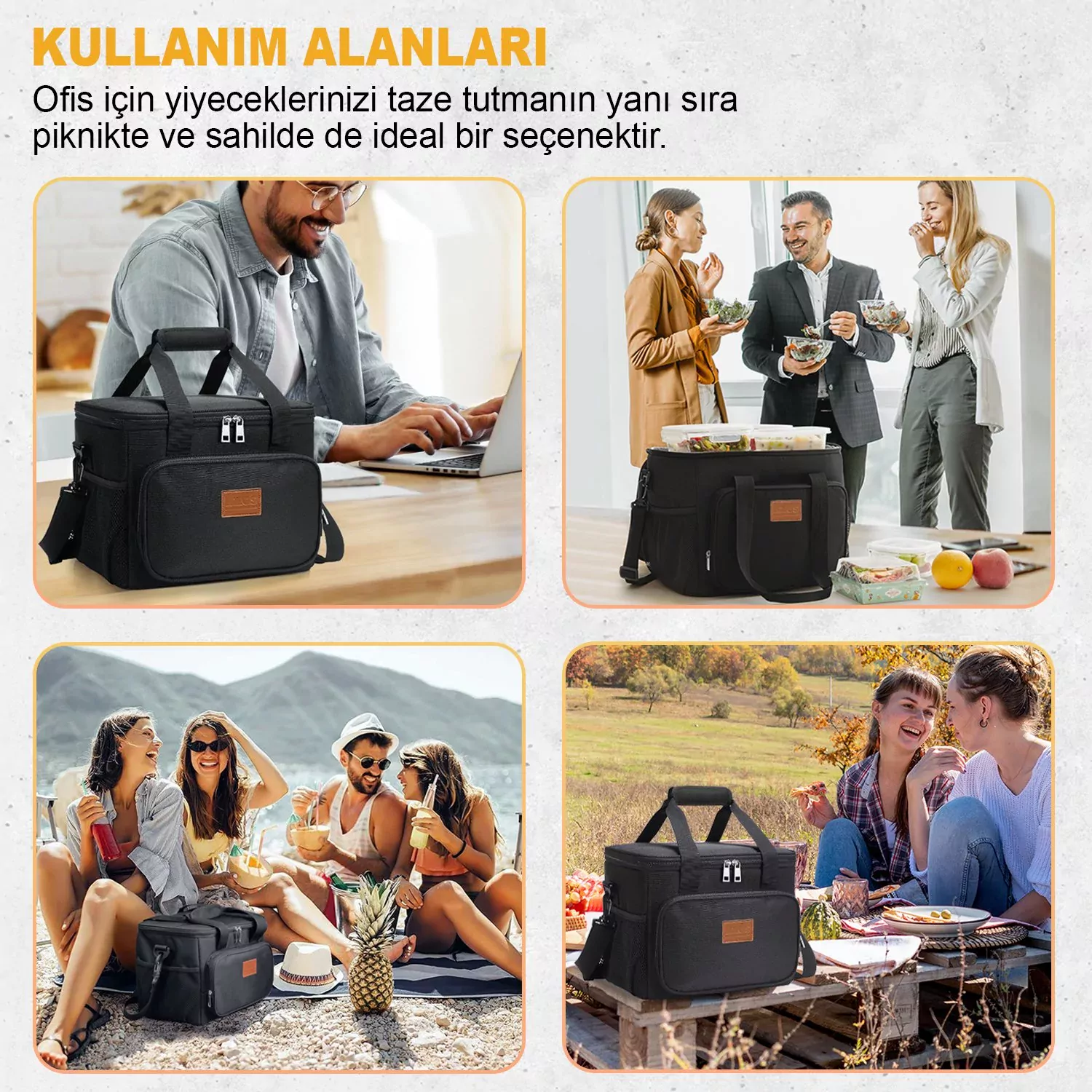 ✅ BÜYÜK KAPASİTE: Boyutlar - 25.4cm × 17cm × 20.3cm. Yetişkinler için beslenme çantasının kapasitesi 8,5L'dir ve 12 kutu kola (330ml) ya da öğle yemeği, sandviç, salata, atıştırmalıklar, içecek ve meyve vb. için uygundur. Termal Çanta Ofis, iş, piknik, plaj, gezi ve outdoor aktiviteleri için uygundur.