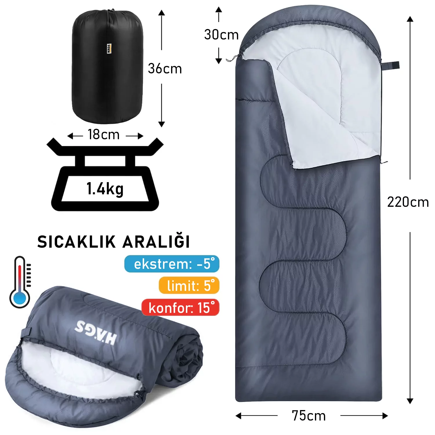 ✅ HAFİF VE TAŞINABİLİR: Uyku tulumunun boyutu (190 + 30) x 75 cm'dir ve uyku sırasında size daha fazla özgürlük ve konfor sunmak için yeterli alan sunar. 36 x 18 cm saklama çantası boyutu ve sadece 1,4 kg ağırlığı ile hafif ve taşınabilir, hiking veya seyahat etmenizi kolaylaştırır.