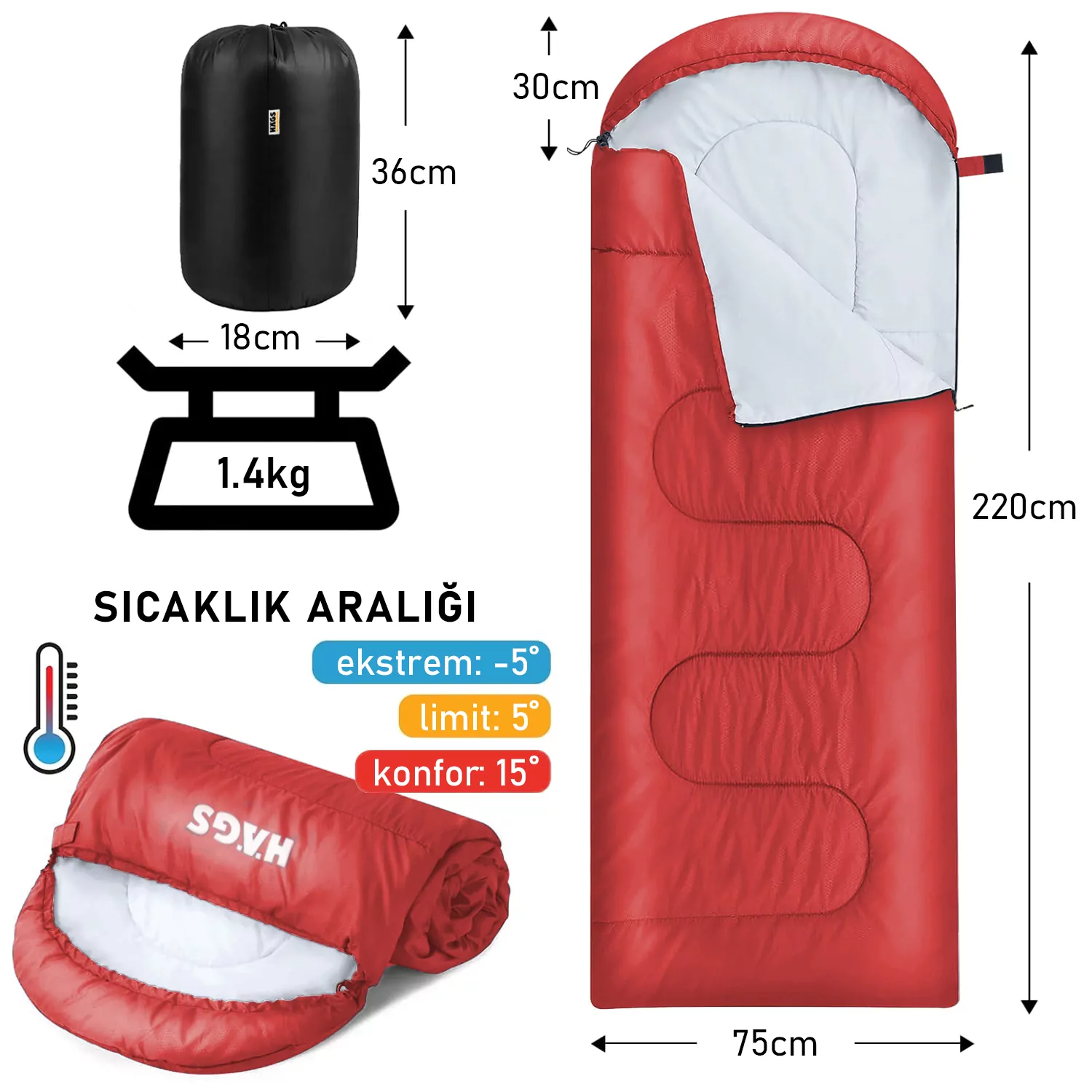 ✅ HAFİF VE TAŞINABİLİR: Uyku tulumunun boyutu (190 + 30) x 75 cm'dir ve uyku sırasında size daha fazla özgürlük ve konfor sunmak için yeterli alan sunar. 36 x 18 cm saklama çantası boyutu ve sadece 1,4 kg ağırlığı ile hafif ve taşınabilir, hiking veya seyahat etmenizi kolaylaştırır.