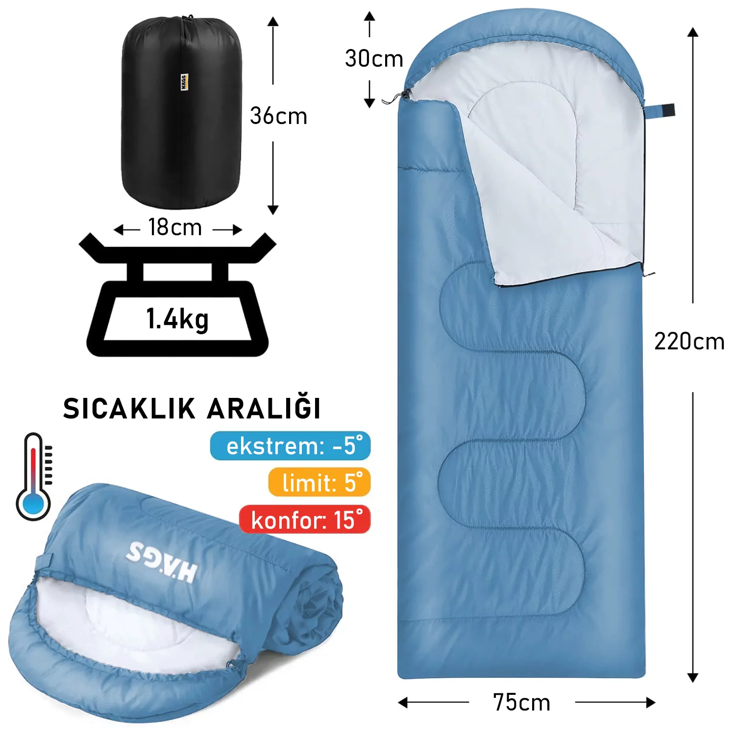 ✅ HAFİF VE TAŞINABİLİR: Uyku tulumunun boyutu (190 + 30) x 75 cm'dir ve uyku sırasında size daha fazla özgürlük ve konfor sunmak için yeterli alan sunar. 36 x 18 cm saklama çantası boyutu ve sadece 1,4 kg ağırlığı ile hafif ve taşınabilir, hiking veya seyahat etmenizi kolaylaştırır.