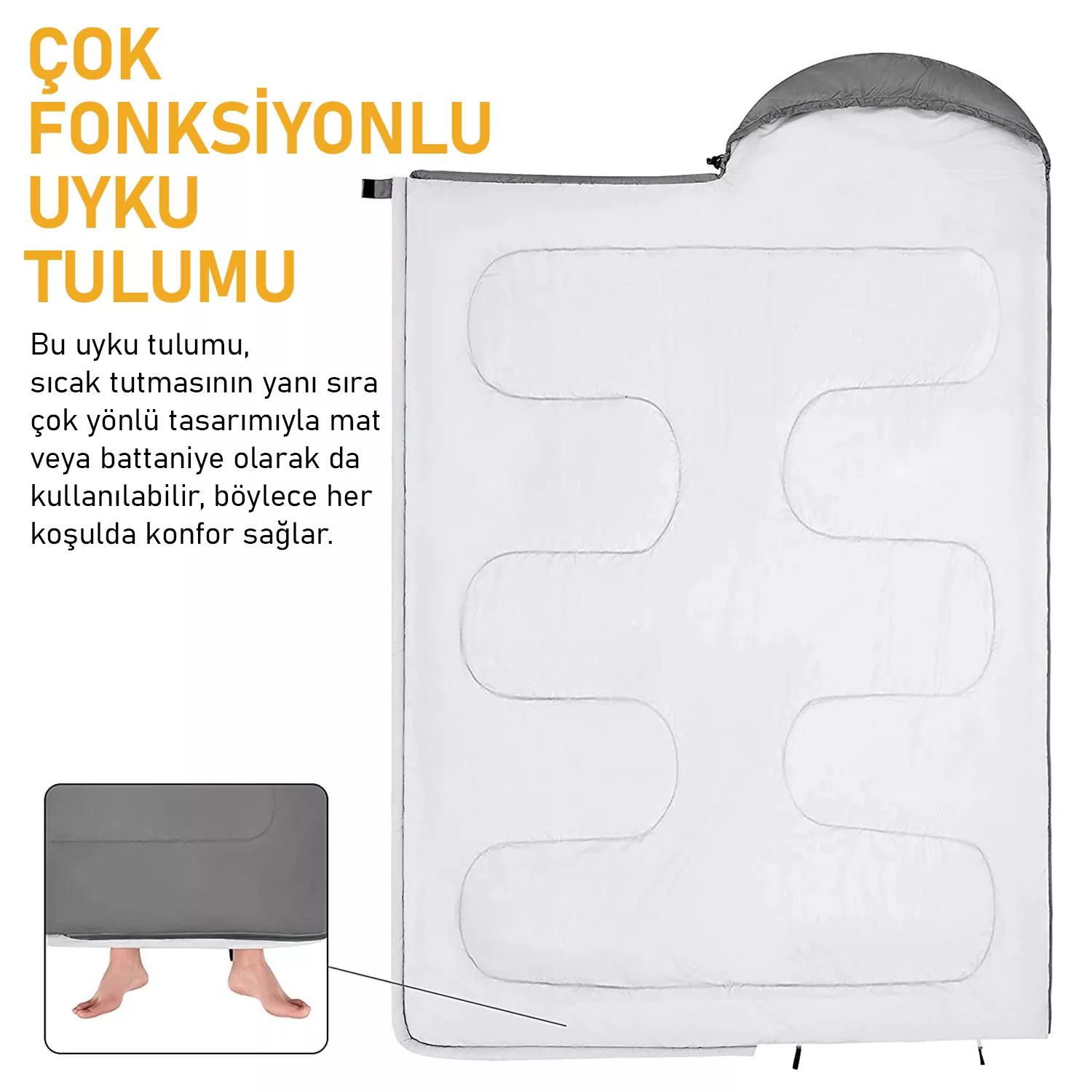 ✅ ÇOK FONKSİYONLU UYKU TULUMU: Bu uyku tulumu sadece sıcak bir uyku ortamı sağlamakla kalmaz, aynı zamanda benzersiz çok fonksiyonlu tasarımı ile de öne çıkar. Outdoor dış mekan kamp uyku tulumu tamamen açılabilir ve size ek konfor sunmak için kolayca konforlu bir mat veya battaniyeye dönüştürülebilir.