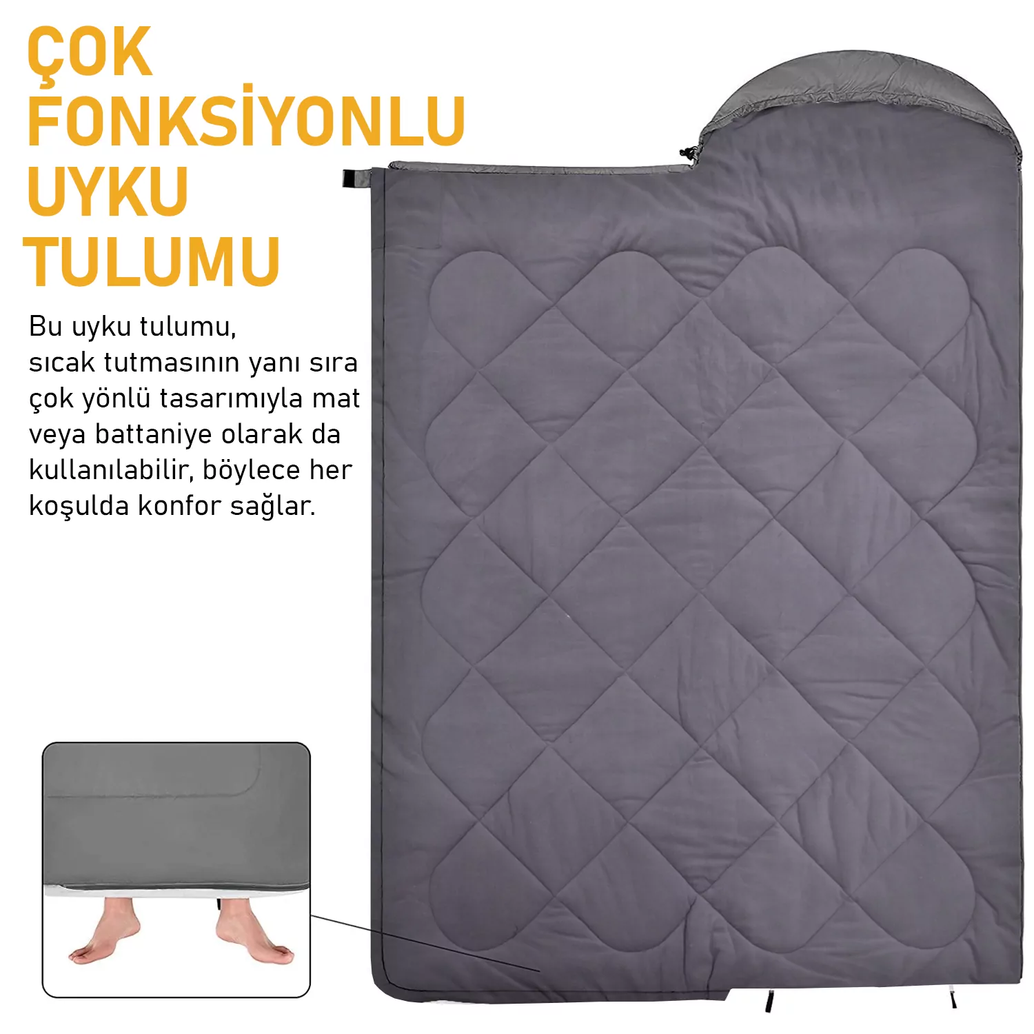 ✅ ÇOK FONKSİYONLU UYKU TULUMU: Bu uyku tulumu sadece sıcak bir uyku ortamı sağlamakla kalmaz, aynı zamanda benzersiz çok fonksiyonlu tasarımı ile de öne çıkar. Outdoor dış mekan kamp uyku tulumu tamamen açılabilir ve size ek konfor sunmak için kolayca konforlu bir mat veya battaniyeye dönüştürülebilir.