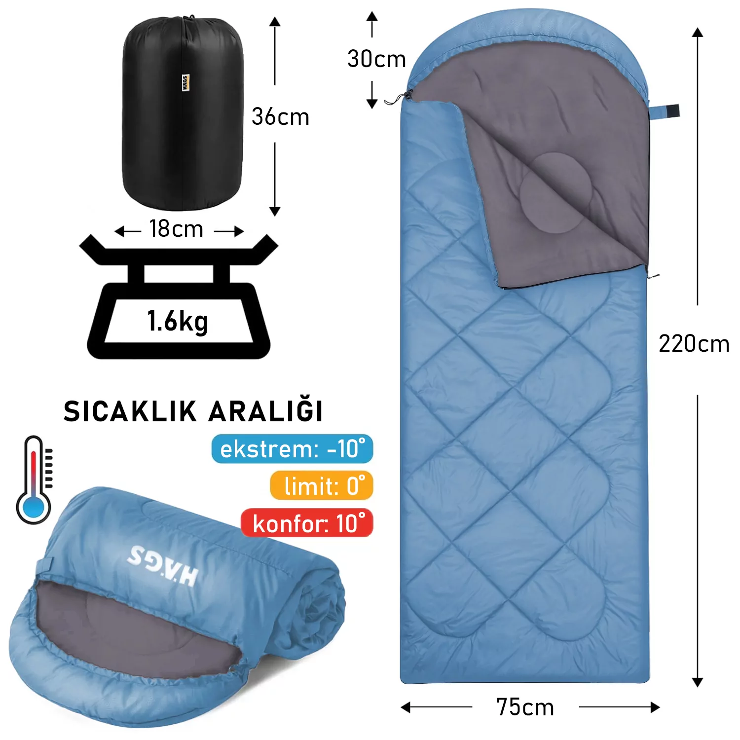 ✅ HAFİF VE TAŞINABİLİR: Uyku tulumunun boyutu (190 + 30) x 75 cm'dir ve uyku sırasında size daha fazla özgürlük ve konfor sunmak için yeterli alan sunar. 36 x 18 cm saklama çantası boyutu ve sadece 1,6 kg ağırlığı ile hafif ve taşınabilir, hiking veya seyahat etmenizi kolaylaştırır.